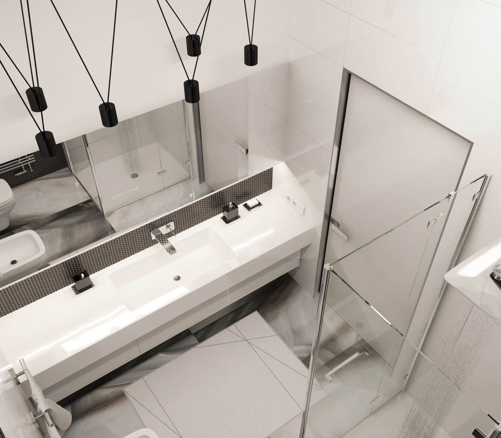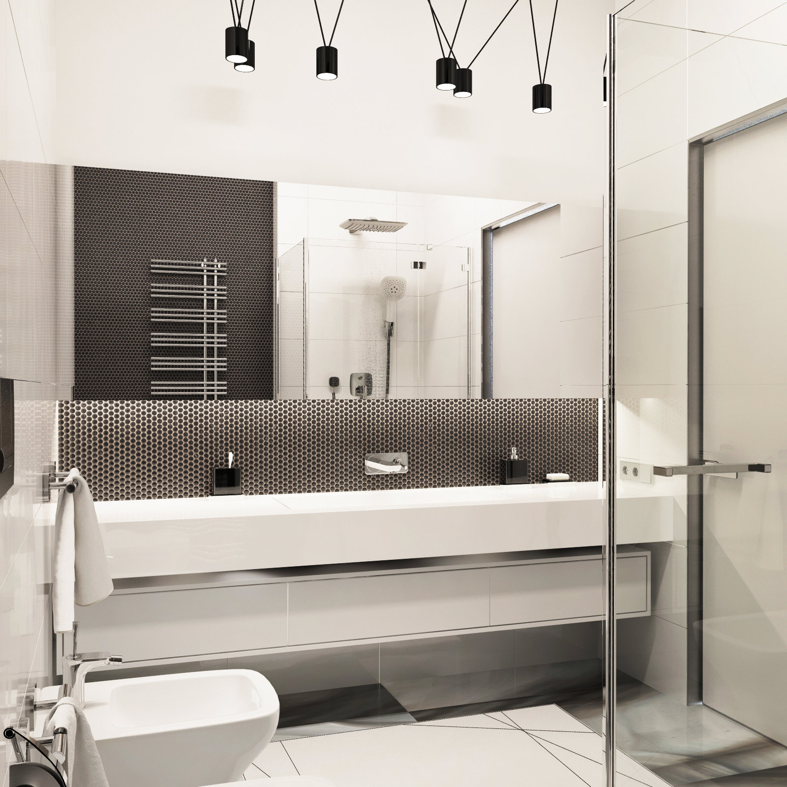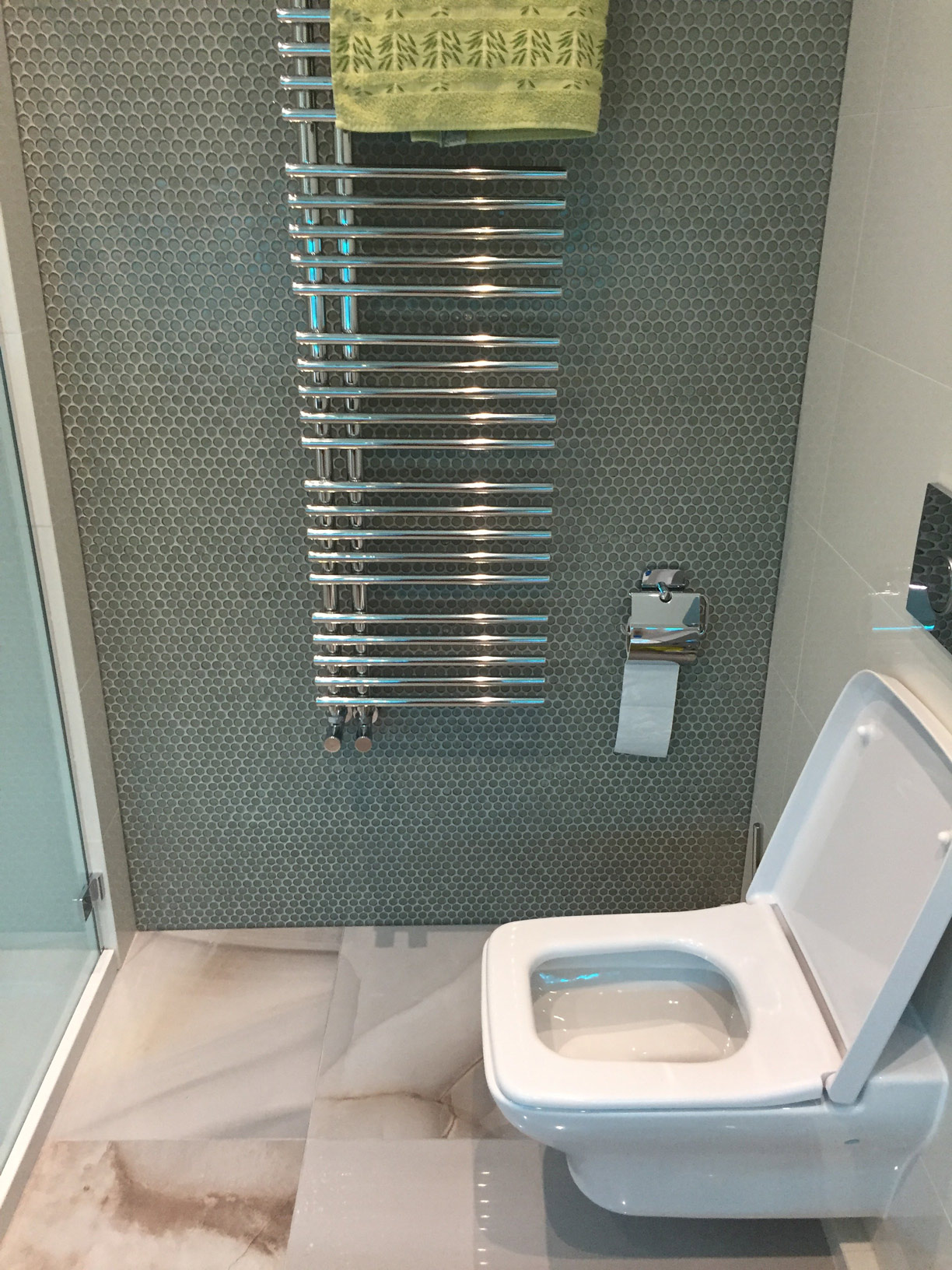 Bathroom on the first floor of the Lviv’s Penthouse. Made for young family and their guests.