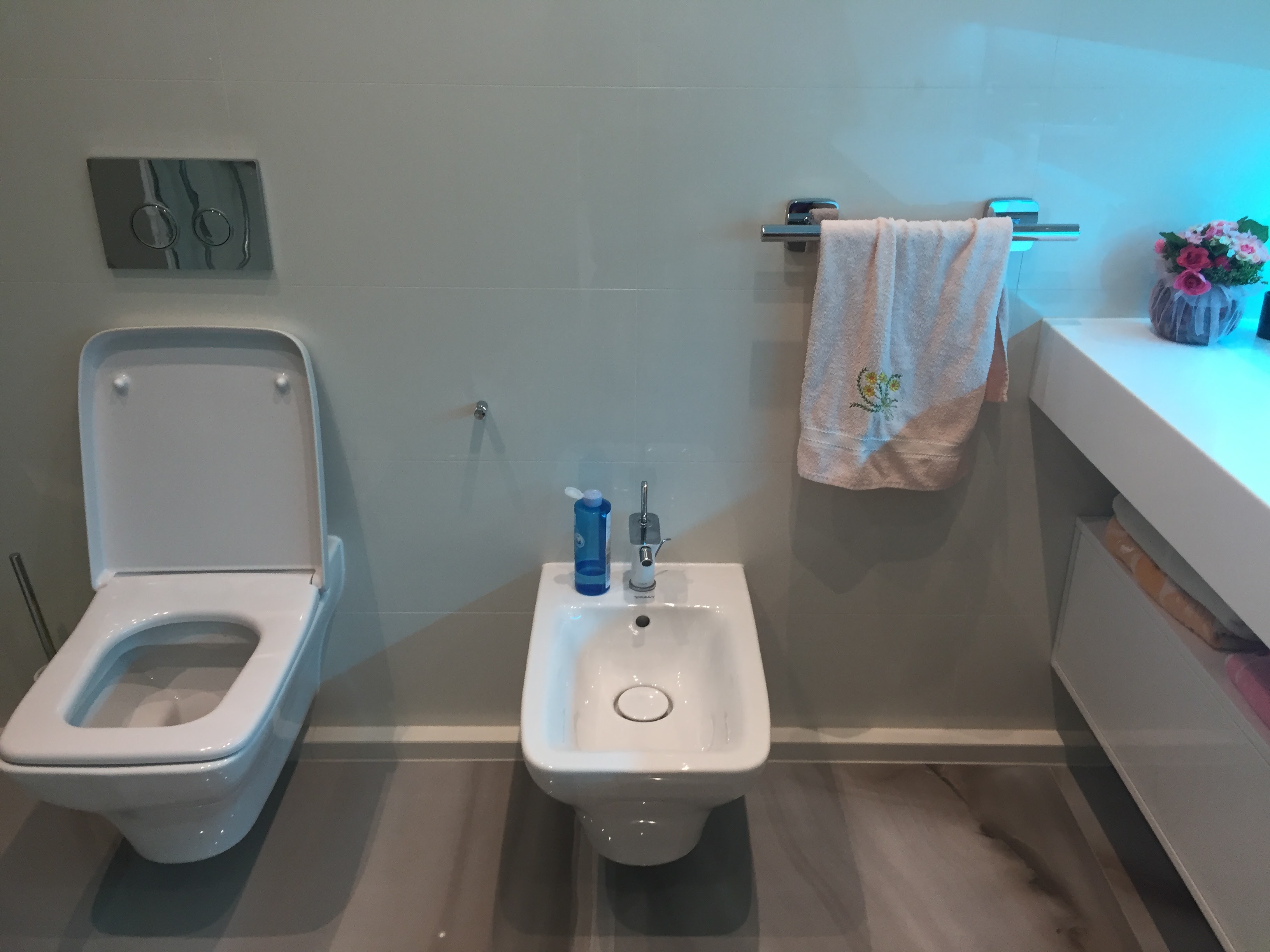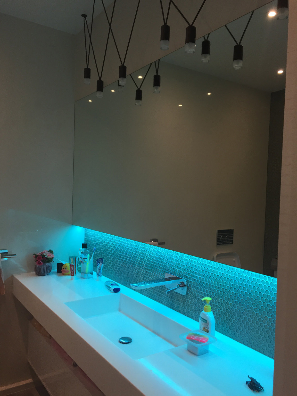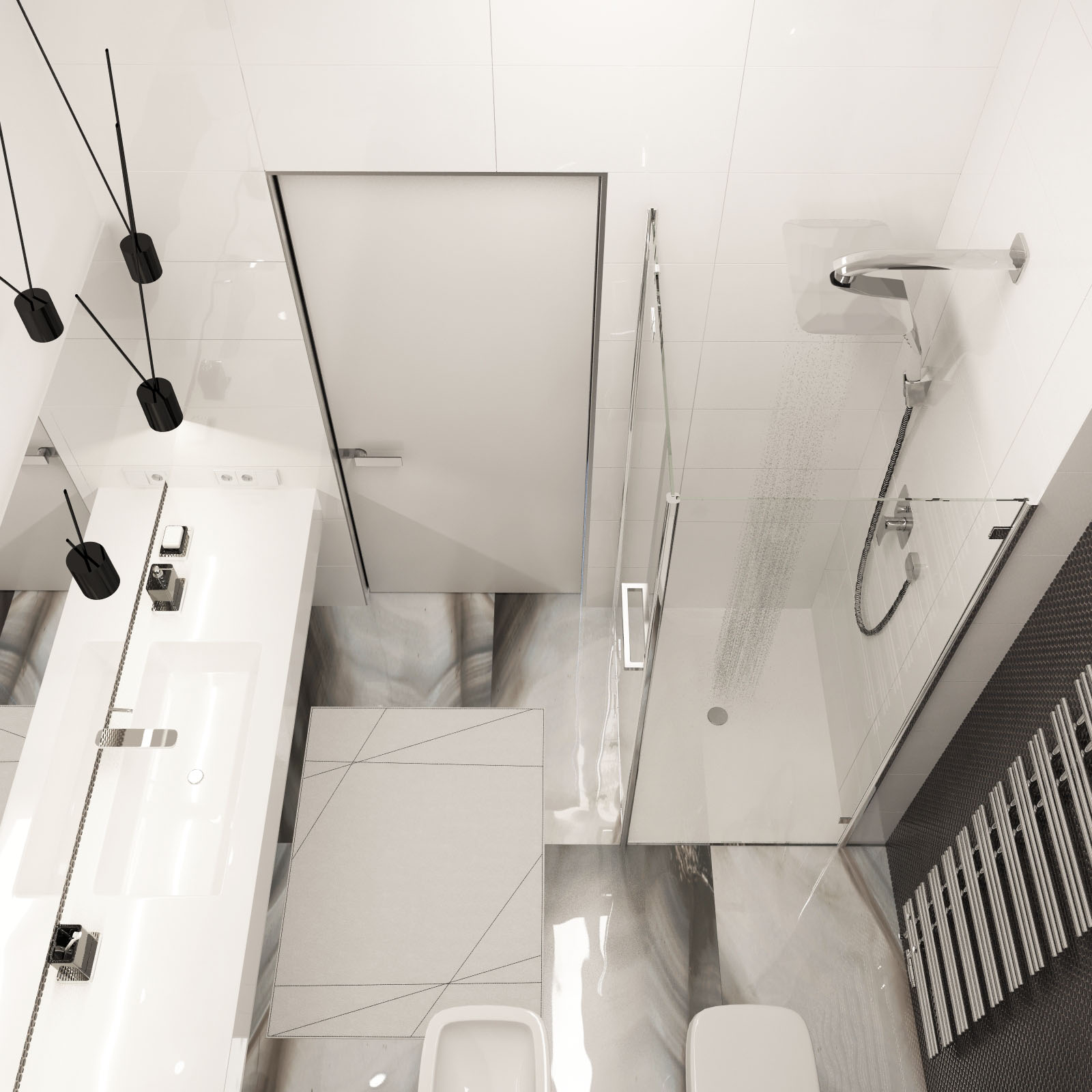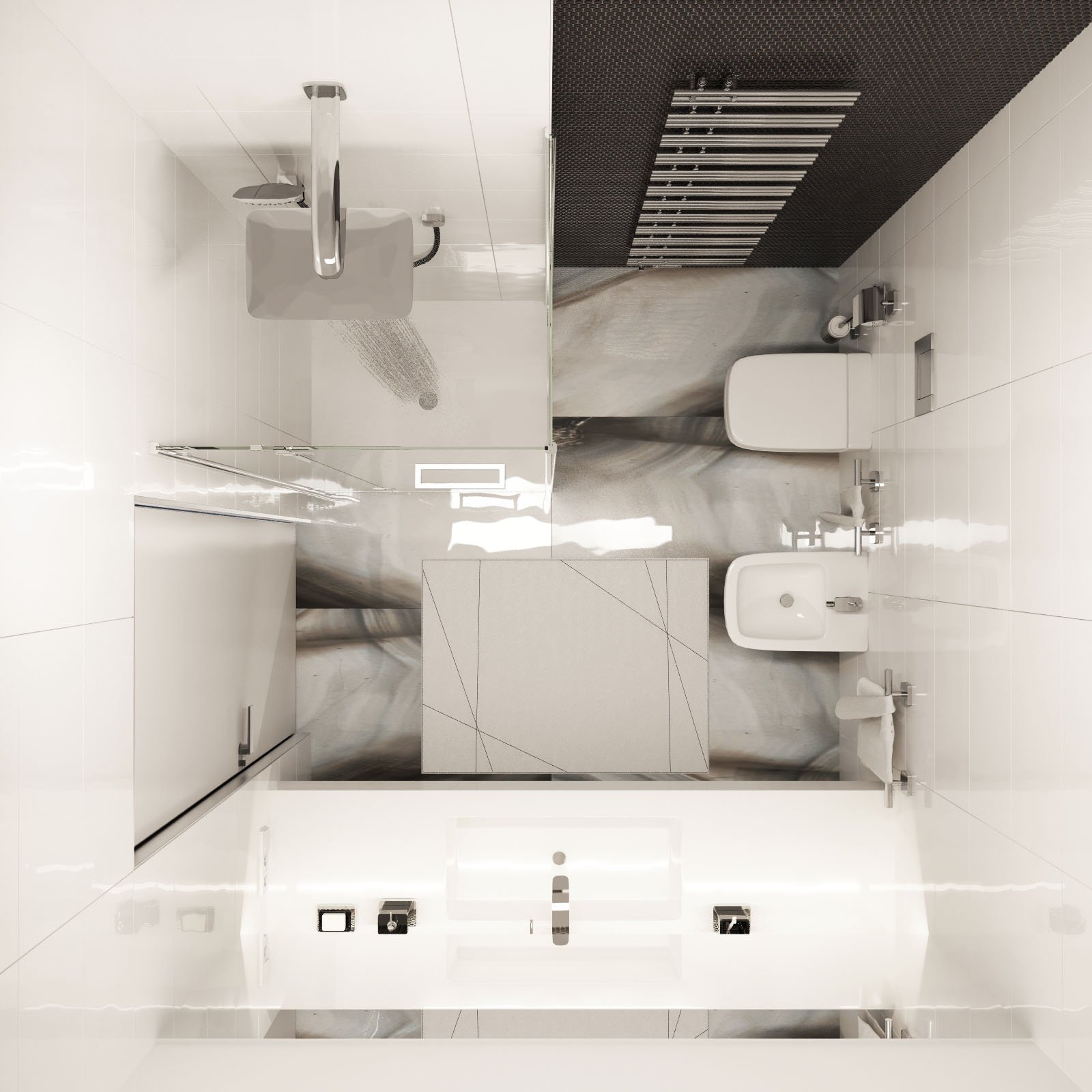 Bathroom on the first floor of the Lviv’s Penthouse. Made for young family and their guests.