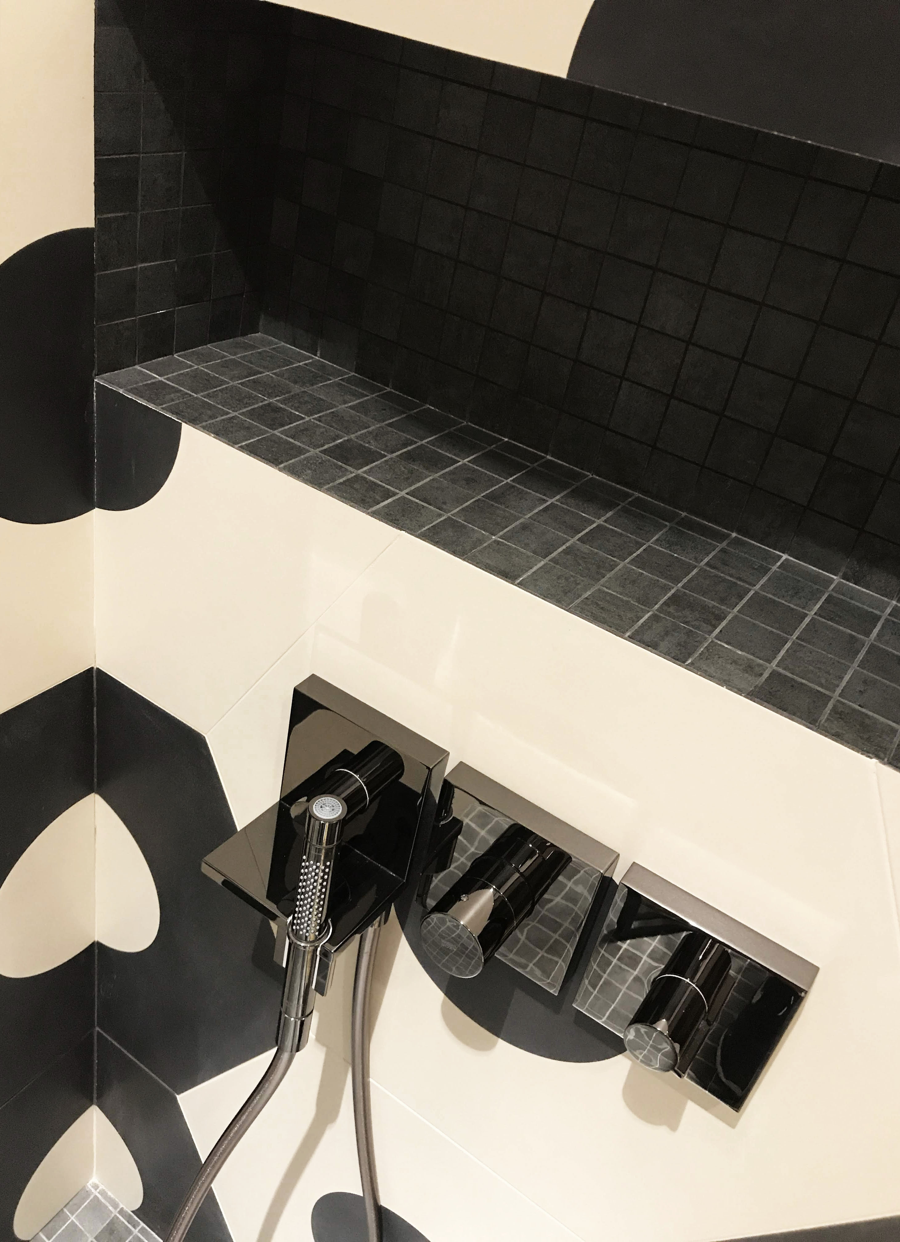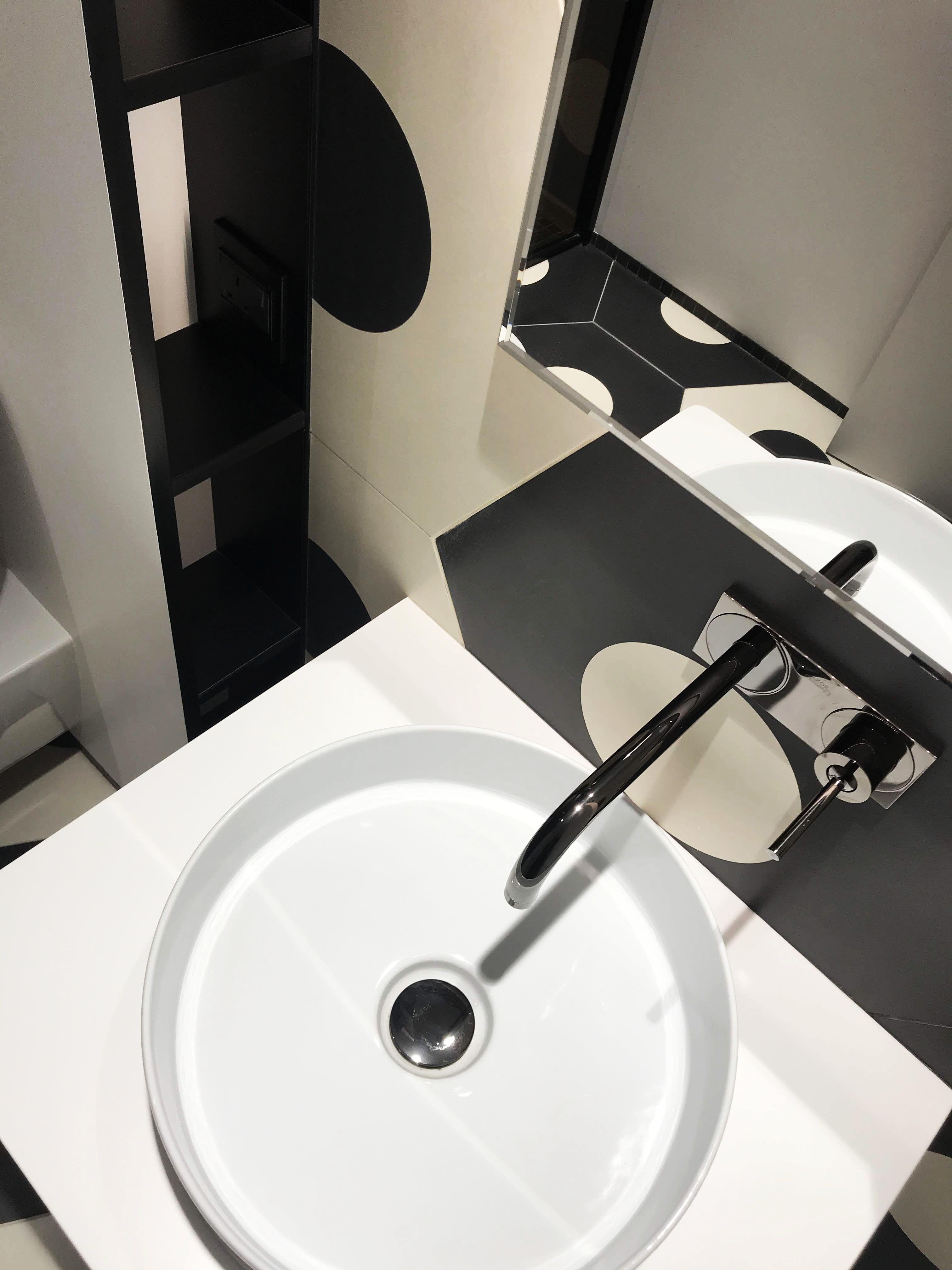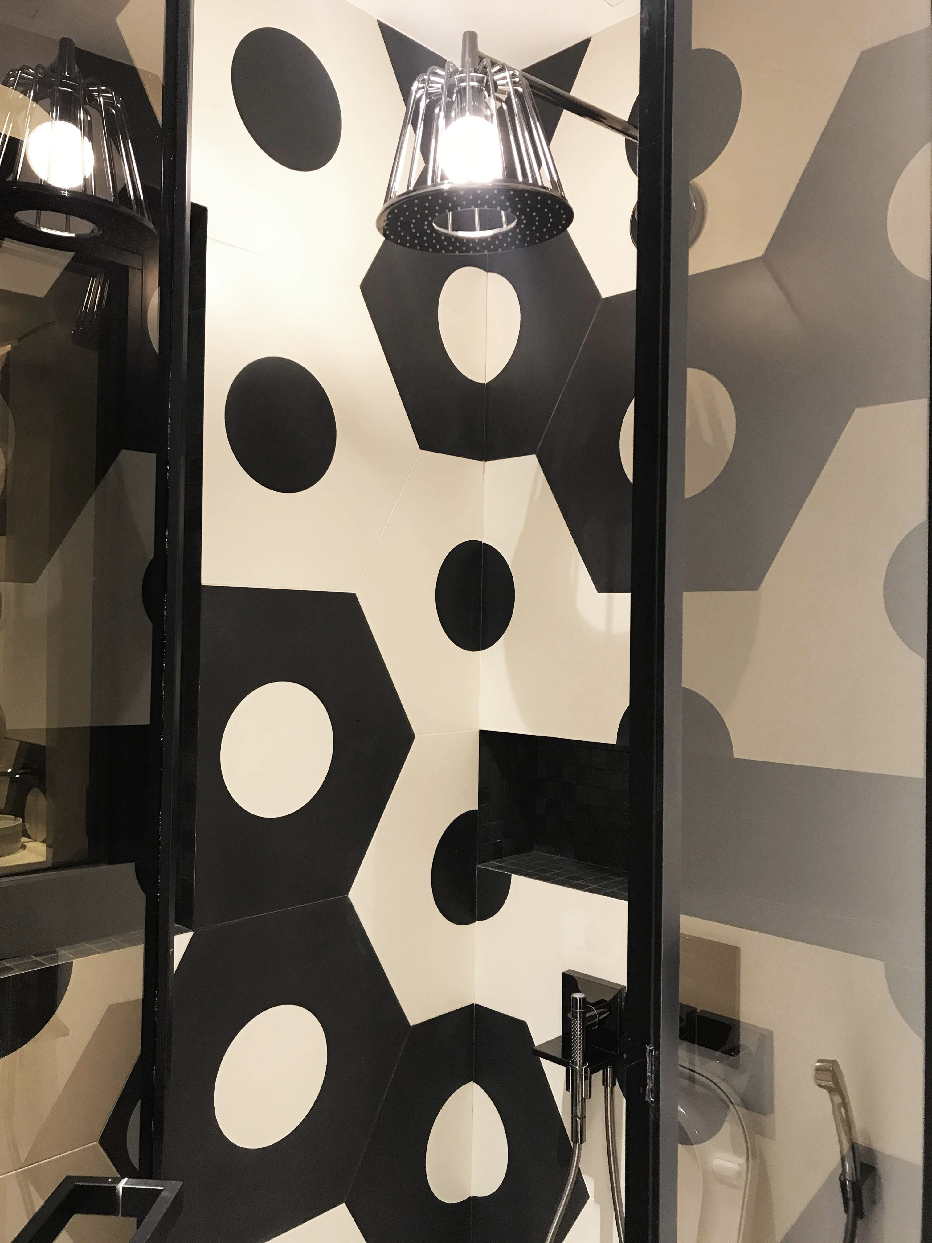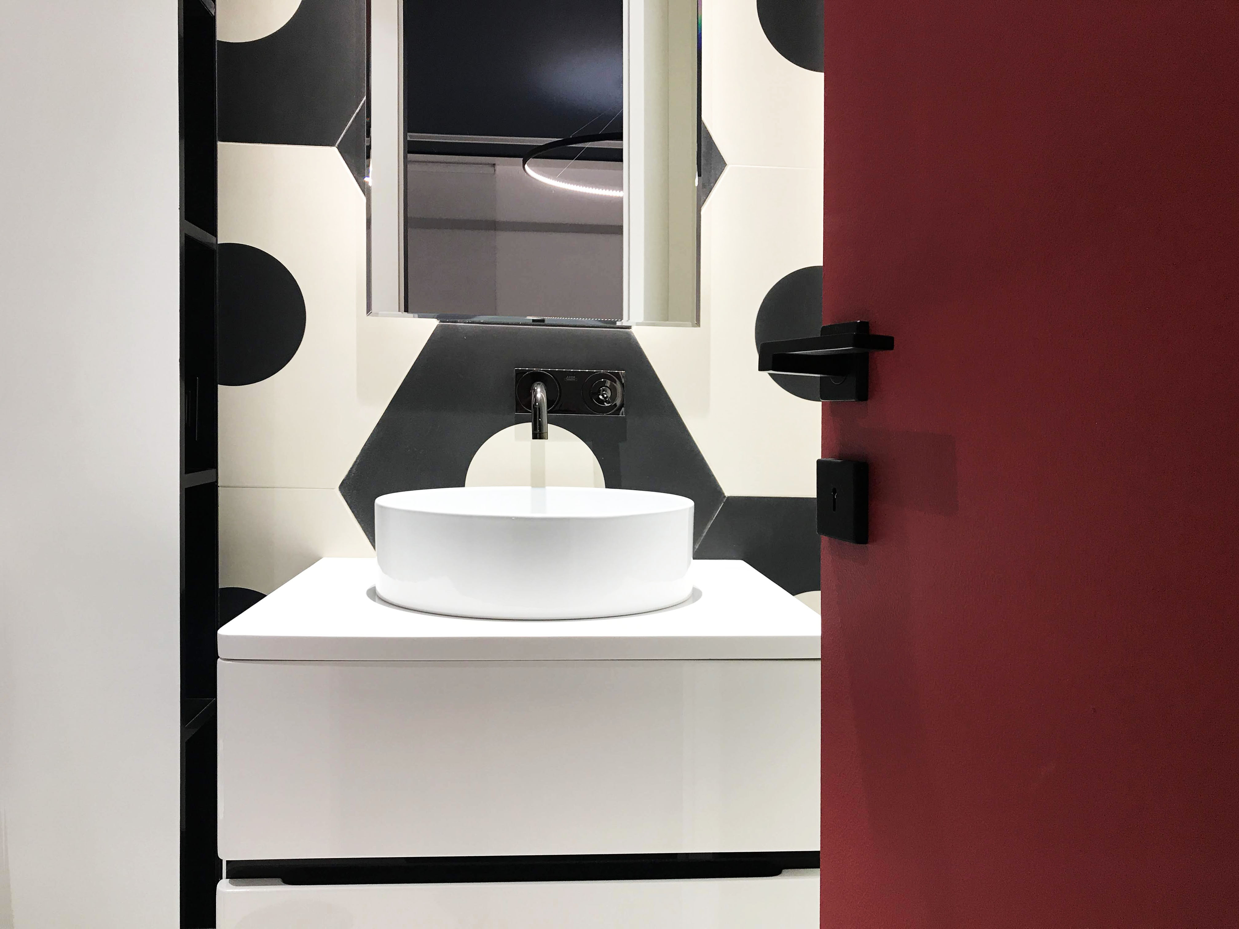 This bathroom is a part of FC Barcelona bedroom. In a bathroom was used big size tile, trying to catch a football mood.