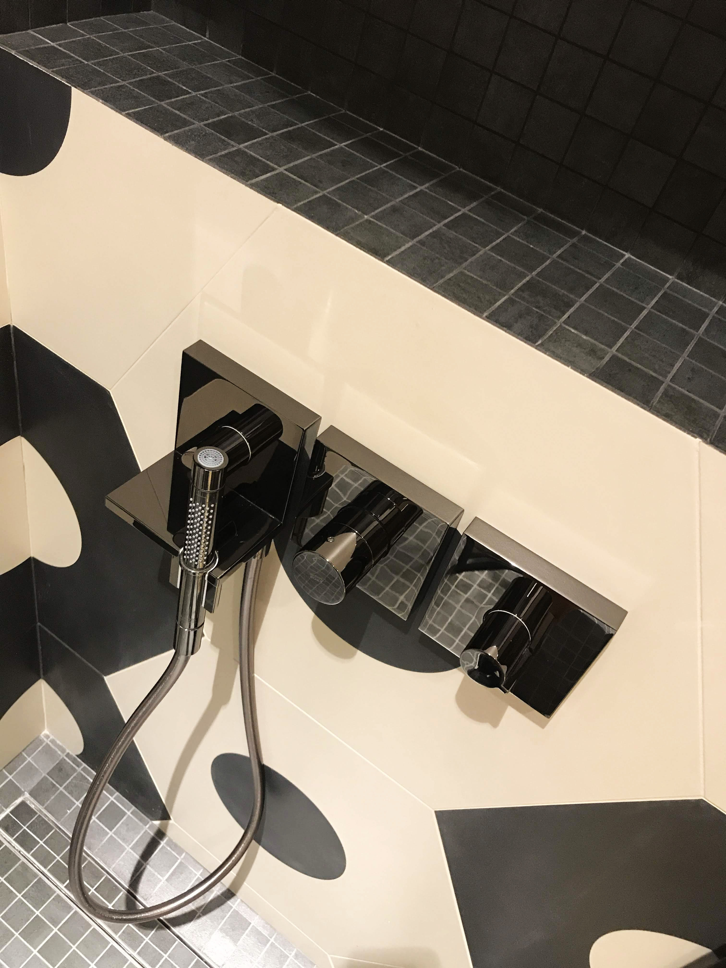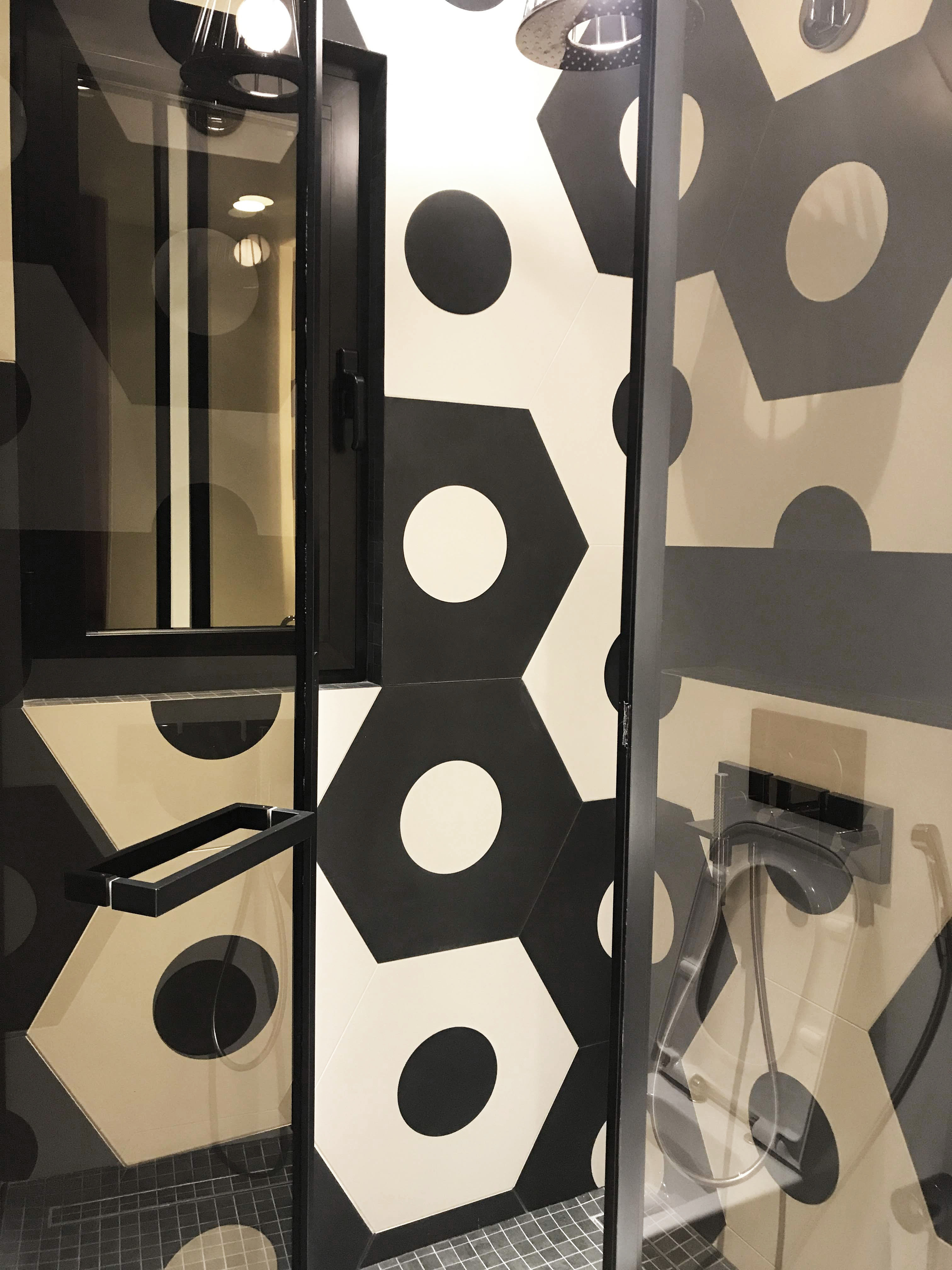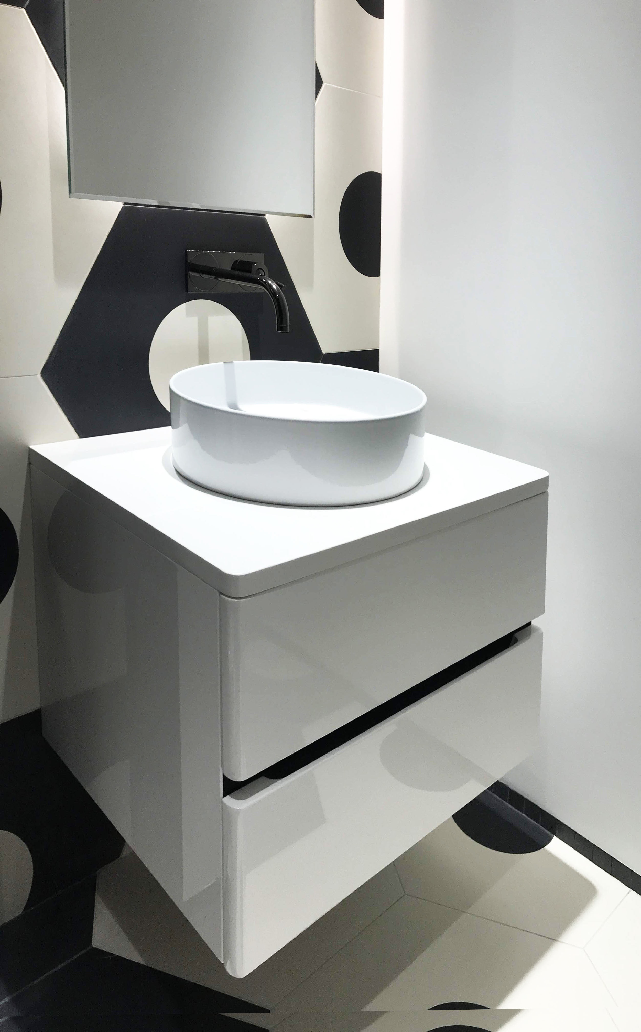 This bathroom is a part of FC Barcelona bedroom. In a bathroom was used big size tile, trying to catch a football mood.