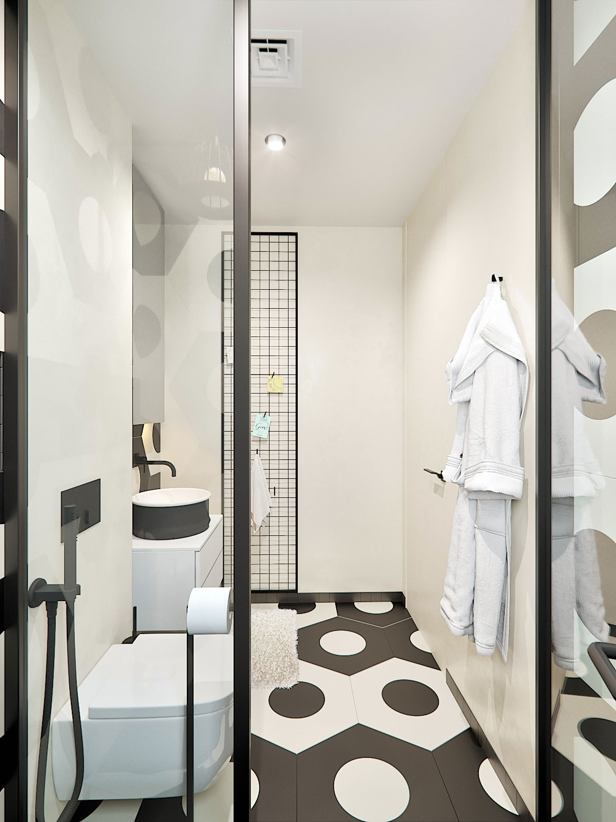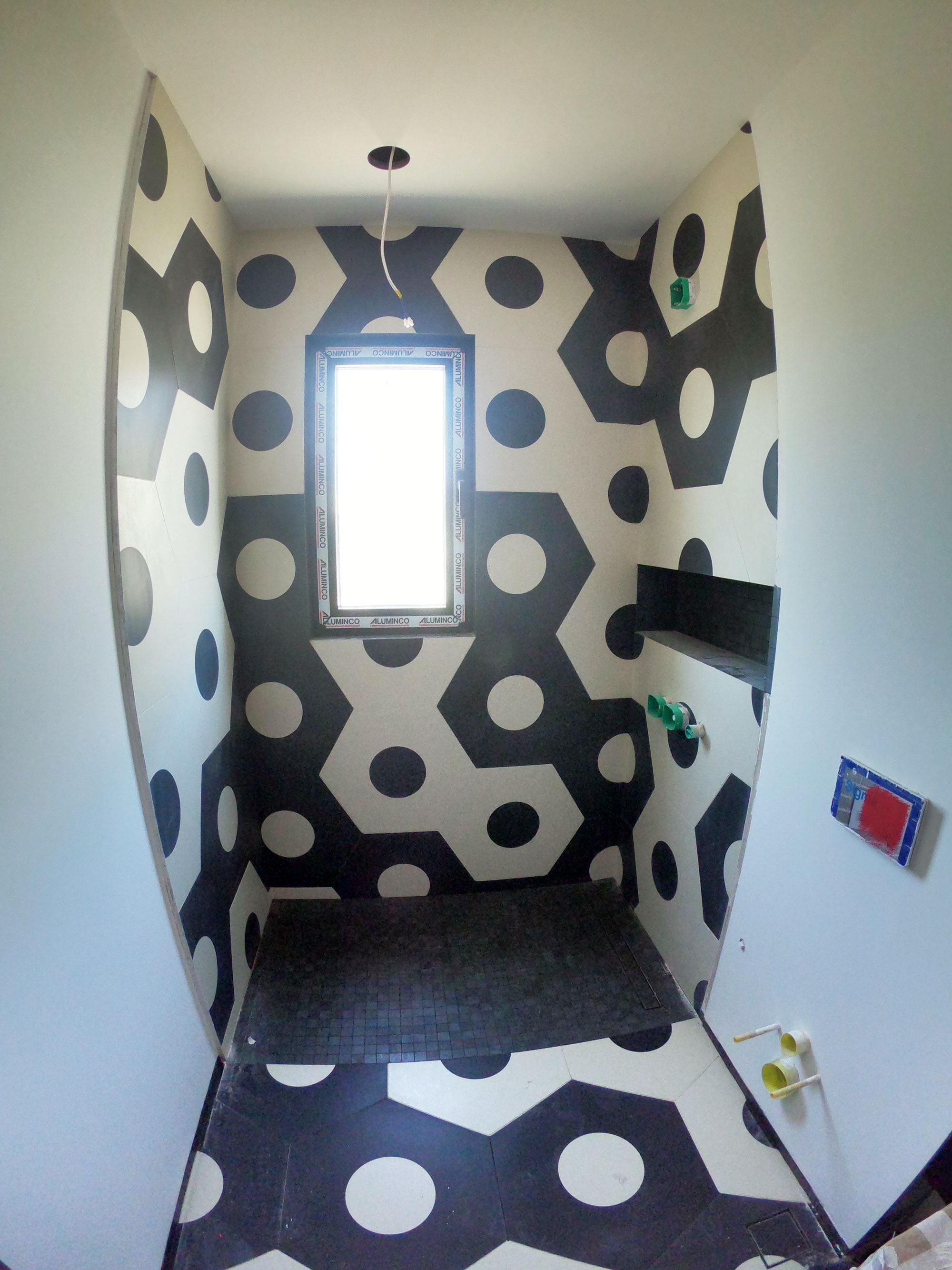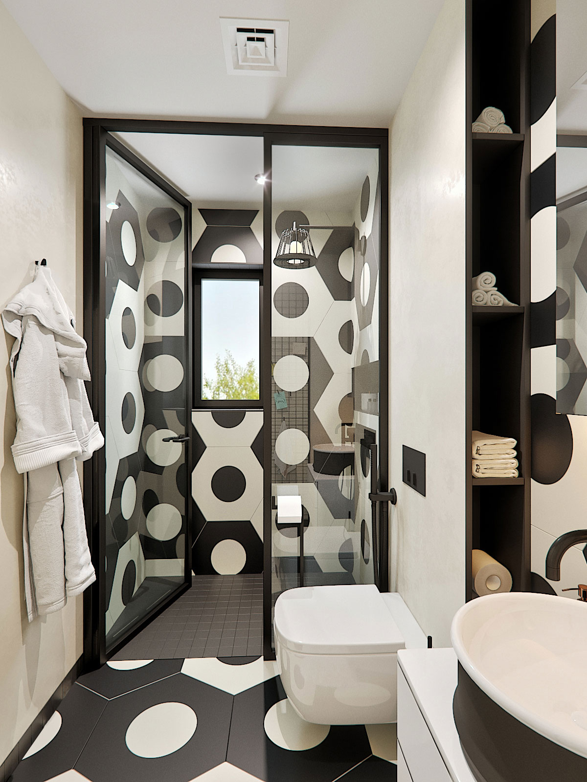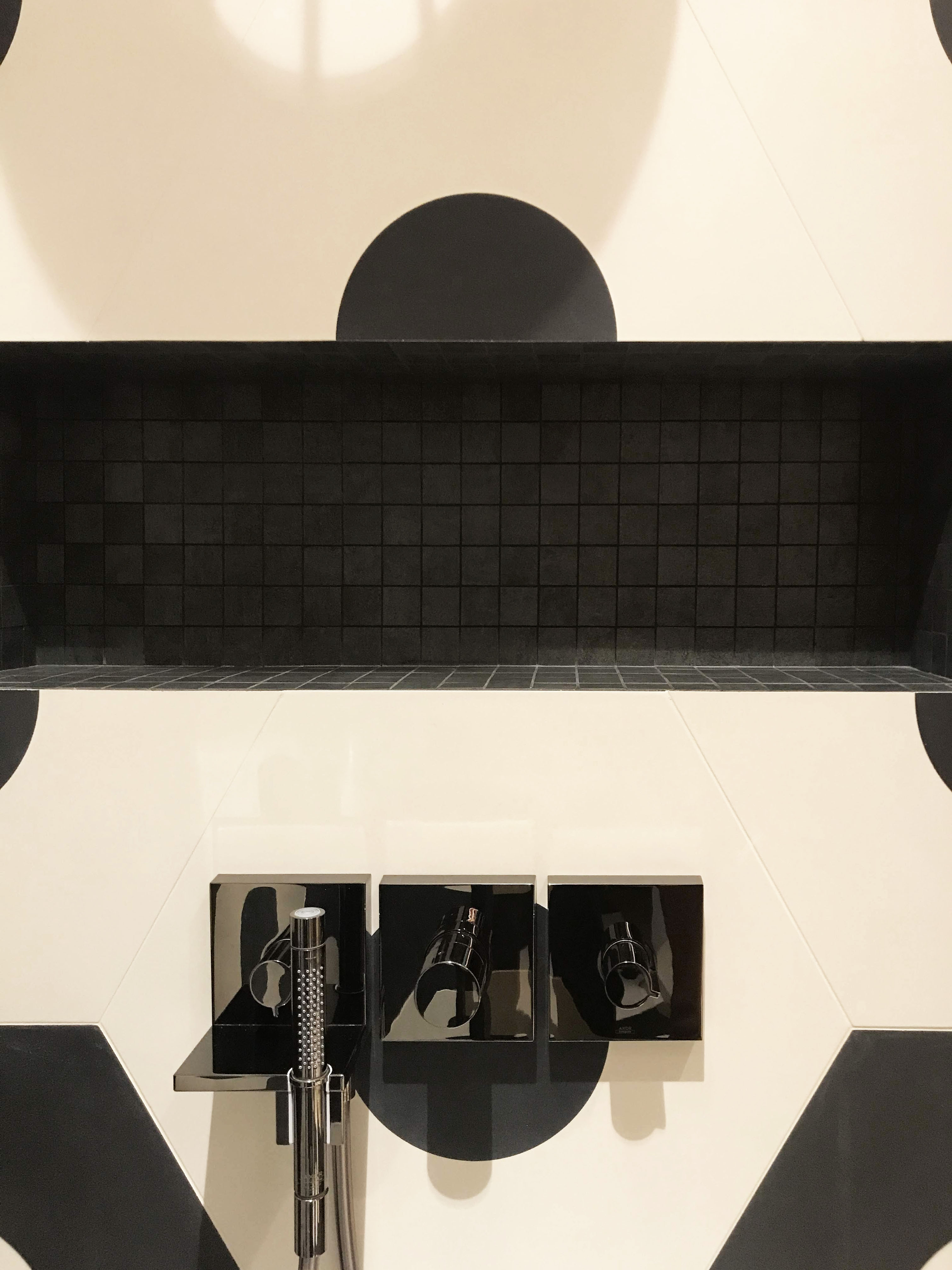 This bathroom is a part of FC Barcelona bedroom. In a bathroom was used big size tile, trying to catch a football mood.