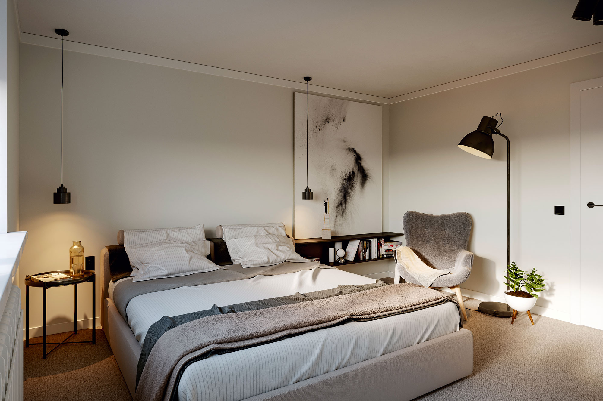 This apartment made for room rent. We tried to make it neutral, modern and comfortable for different people. Here we made bedroom with bathroom, living room and common bathroom.