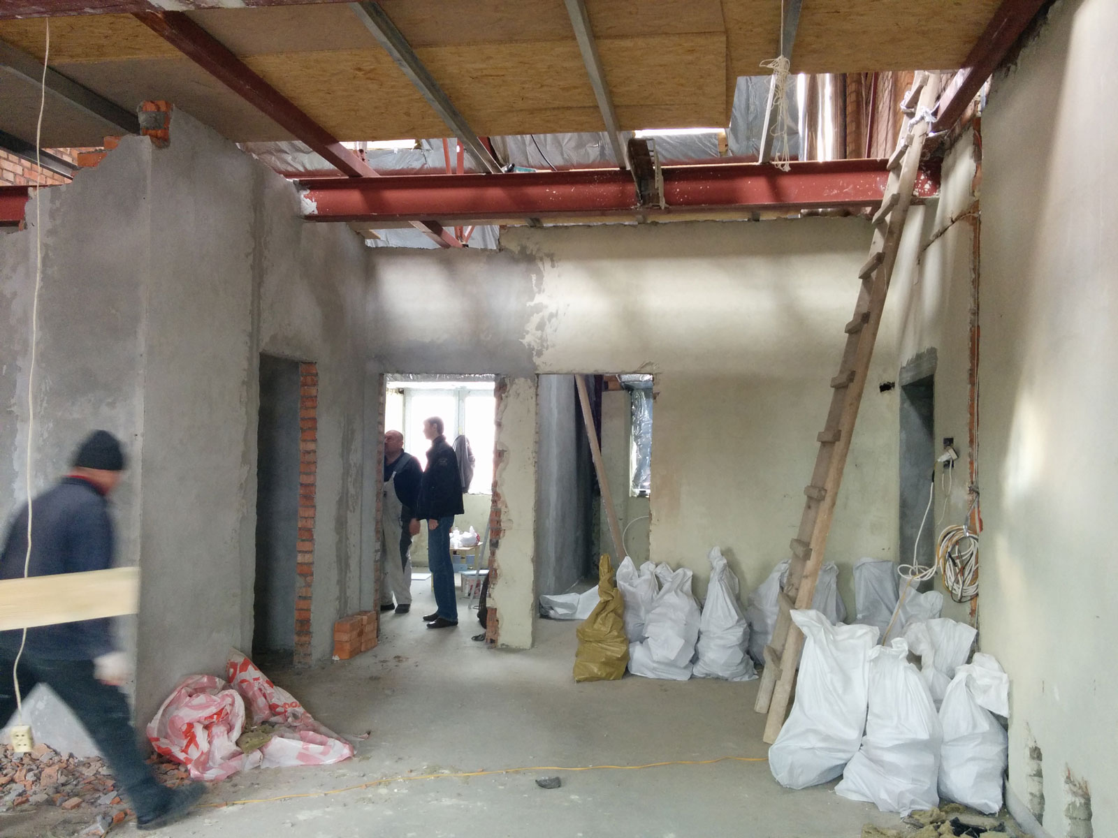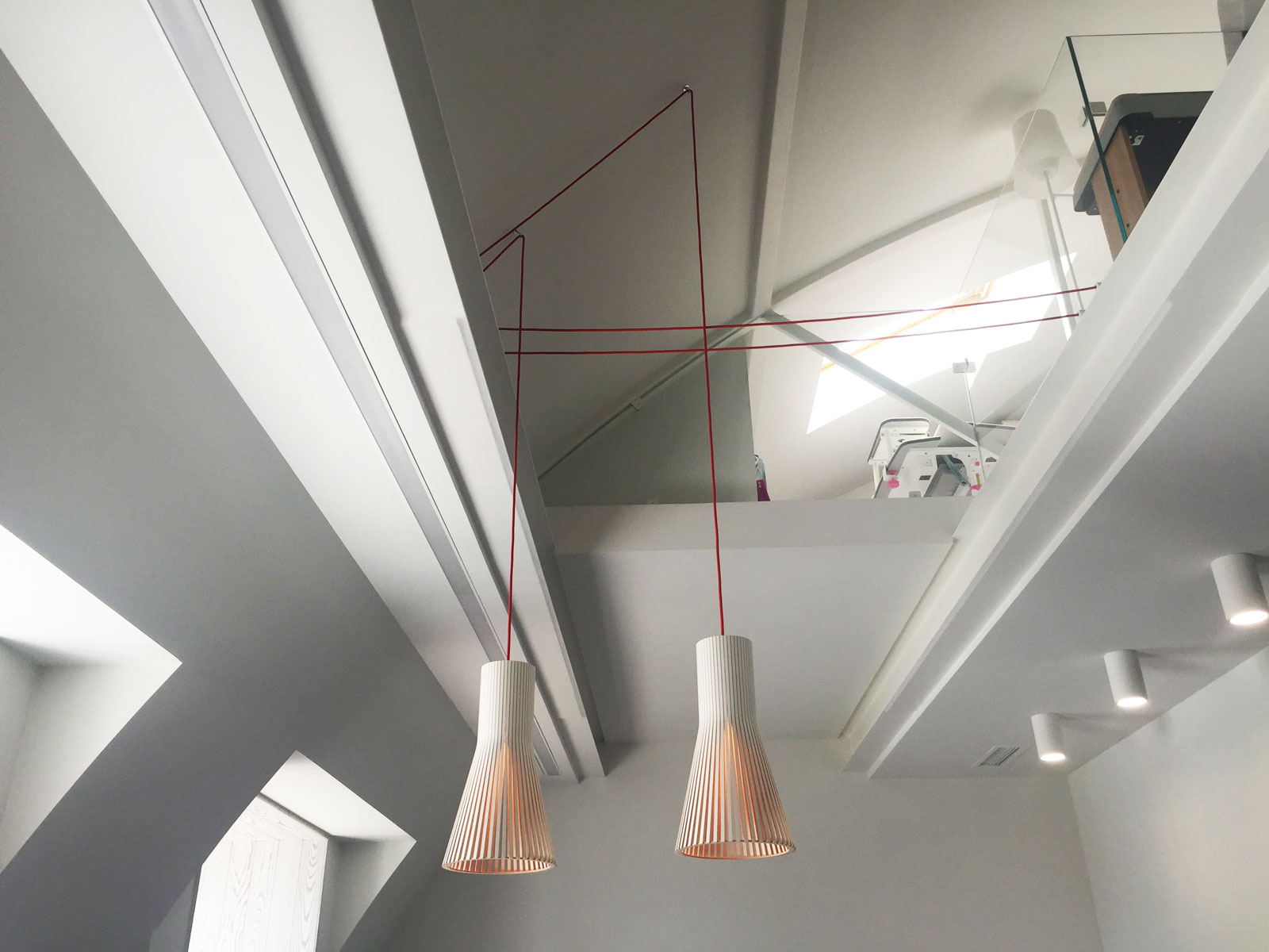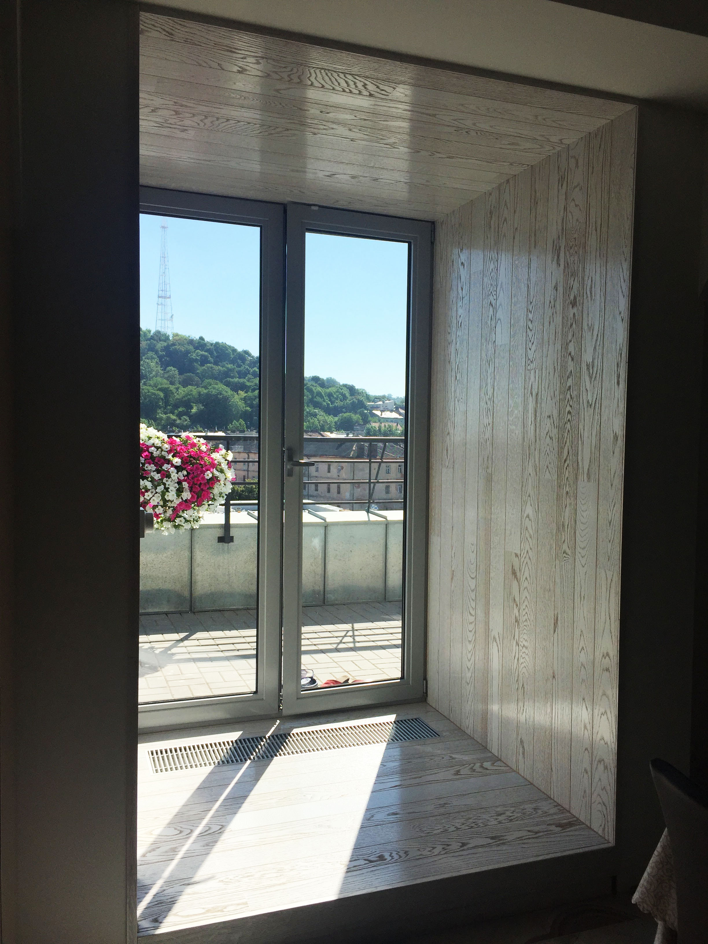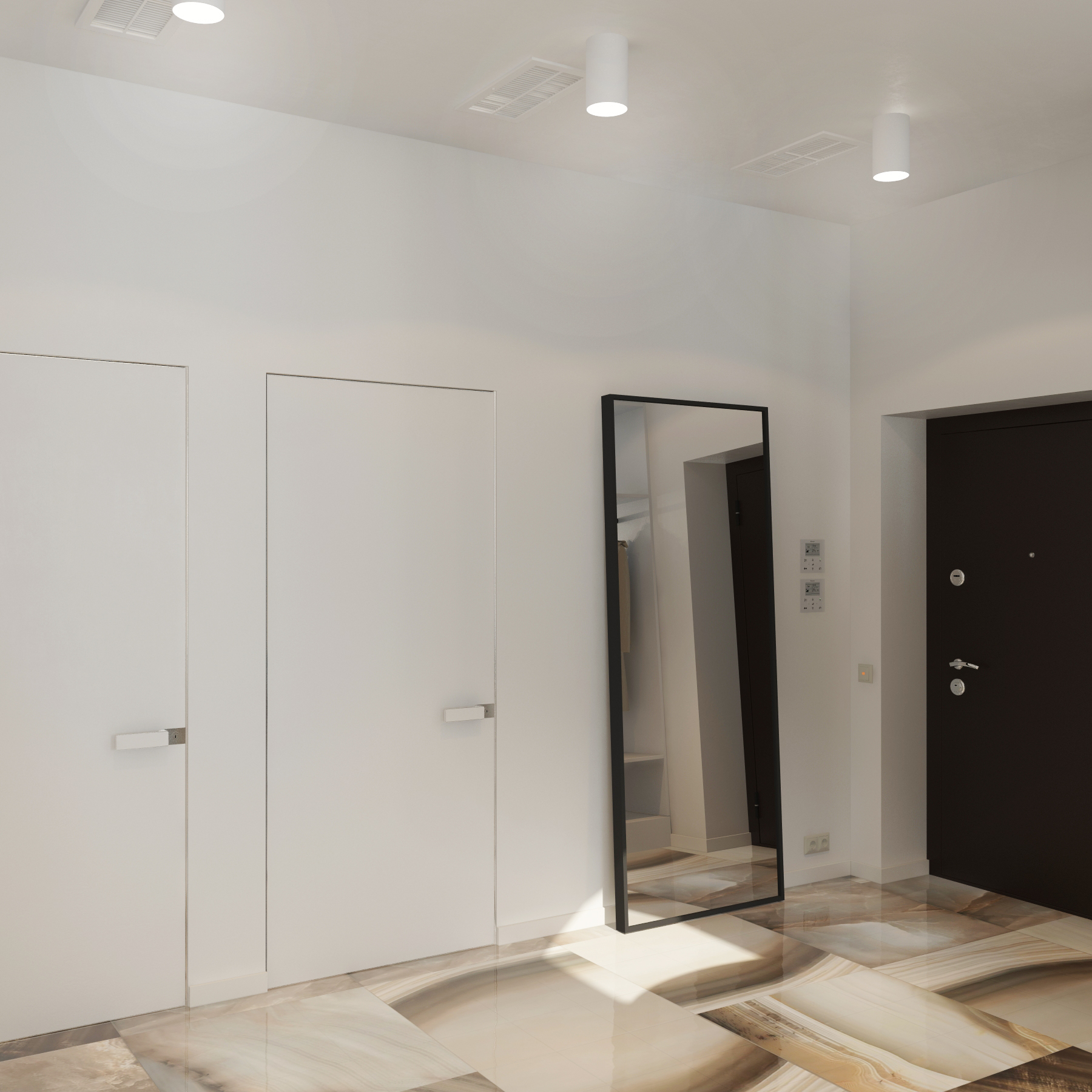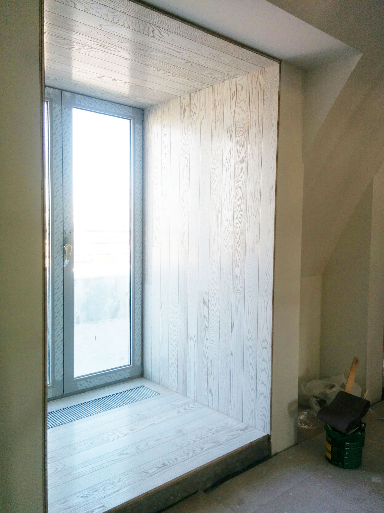 Living room for a young family, part of the penthouse design project. Living and dining room is a one open space connected with a small kitchen.